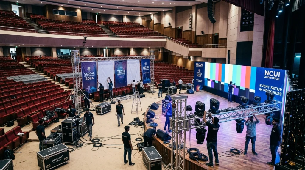 When we manage an event at a venue like the NCUI Auditorium, the magic doesn't happen when the CEO takes the stage. It happens in the 24 hours leading up to that moment. It’s a high-stakes race where fabrication, technology, logistics, and branding must harmonize perfectly.
